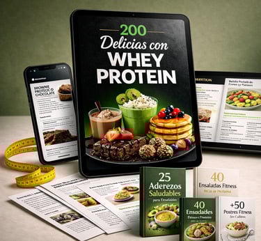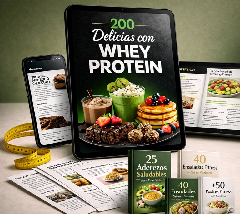 Es una guía exclusiva con 200 recetas deliciosas con whey protein, creada para ayudarte a disfrutar de preparaciones prácticas, sabrosas y nutritivas sin salir de tu objetivo.